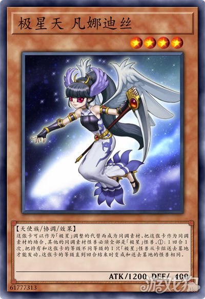 这张卡可以作为「极星」调整的代替而成为同调素材。把这张卡作为同调素材的场合,其他的同调素材怪兽必须全部是「极星」怪兽。①:1回合1次,把持有和这张卡的等级不同等级的1只「极星」怪兽从卡组送去墓地才能发动。这张卡的等级直到回合结束时变成和送去墓地的怪兽相同。
