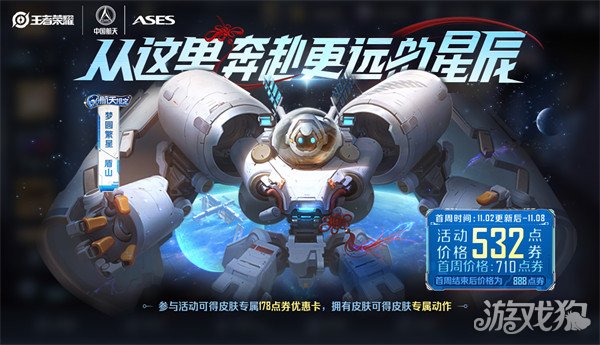 总而言之,盾山的新皮肤梦圆繁星是一款航天限定皮肤,如果有想要喜欢这款皮肤的玩家,大家在首周购买会优惠356点券,喜欢的玩家可以抓紧时间购买。