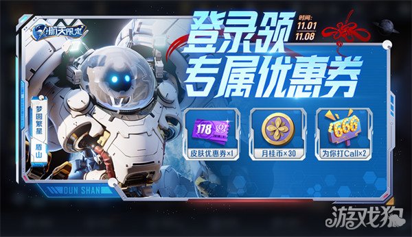 1、盾山·梦圆繁星新皮肤专属178点券优惠卡(2022.11.02~2022.11.08期间可使用);