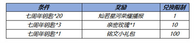 王者荣耀七周年福利持续放送中,参与活动收集七周年钥匙即可兑换周年庆荣耀播报!