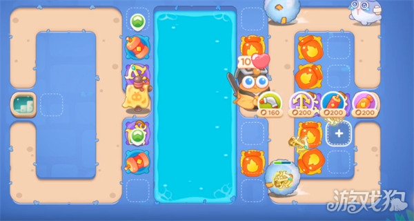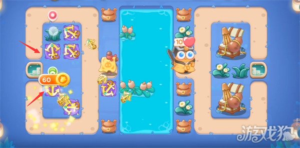 4如图所示补上船锚塔,这时我们左边的障碍基本清理干净了,我们需要注意的就是尽量将兔子在左边就给击败掉