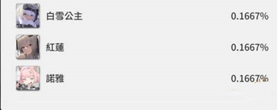 3、队员招募中,SSR出货几率为4%,SR出货几率为43%,R出货几率为53%,SSR角色中,有3名官方未标注的UR角色,出货率各为0.1667%。
