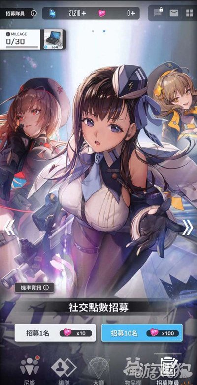 1、需要消耗【社交点数】,每次招募需要消耗10点【社交点数】