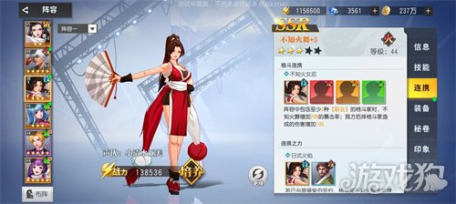 不知火舞的连携技能为自己增加20%暴击率的同时,也可以为后排的k增加10%的攻击力