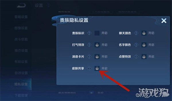 王者荣耀V10玩家只需要开启图中功能可以直接共享皮肤,但是有一点但要注意,那就是皮肤共享发你,在每周好友只能使用5次皮肤共享。
