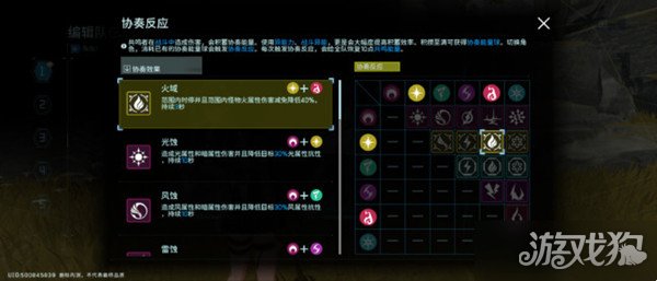 游戏中,共有6大属性,当角色之间进行切换时则会触发协奏反应,根据角色属性效果各不相同。比如从雷属性与暗属性角色切换时候会触发【风蚀】,造成大量伤害的同时且降低怪物抗性,协奏反应是战斗中伤害的主要来源之一。
