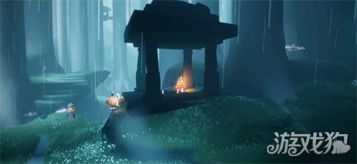 3、雨林隐藏图:进入雨林地图后,向右前方飞,能看到右边出现一片草坪,草坪上的石门就是集结季隐藏图的入口。