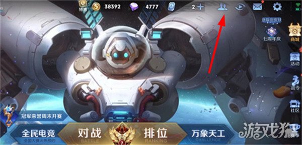 1、首先大家进入游戏首页,点击右上角的好友功能。