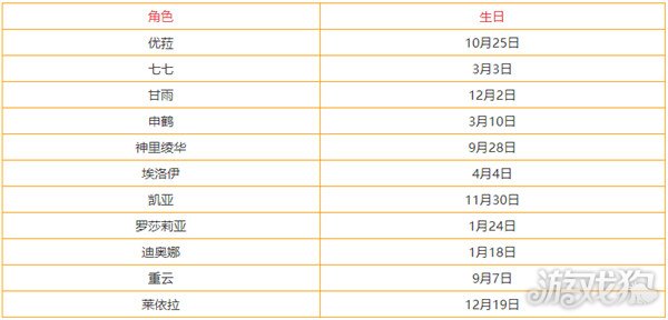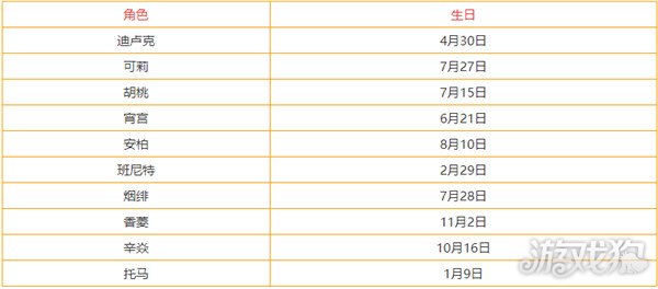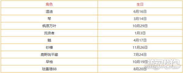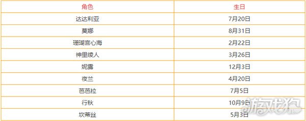 原神角色生日时间表汇总 全部角色生日查询攻略,原神目前已经更新到须弥了,新增的角色也越来越多,角色的生日大家都记得吗,下面是小编整理的全部角色生日汇总,快来看你喜欢的角色什么时候生日吧。 一、风系角色生日时间 二、岩系角色生日时间 三、雷系角色生日时间 四、草系角色生日时间 五、水系角色生日时间 六、火系角色生日时间 七、冰系角色生日时间