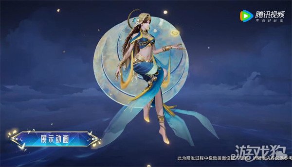 整体颜色以蓝色和金色为主,正如金色月光洒在圣泉之蓝上,花朵的装饰凸显她美丽动人的特质,手上放置的是圣泉边最后一朵花儿,体现了女神对万事万物的怜悯之情。华丽的宝石和金饰闪闪发光,若隐若现的面纱下是女神绝美的容颜。
