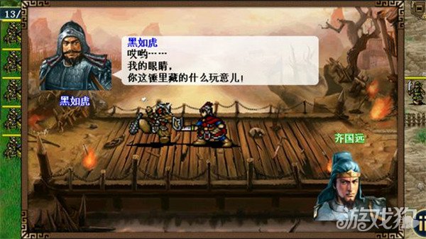 开局给单雄信突击马(不然很麻烦)要进隐藏关的朋友给齐国远最高输出装备(双锏飞刀龙袍,套装更好)我军右下角进了阵会禁咒,建议加好buff以后把敌军放出来,不要进去。第三回合罗成发动阵型,敌军无限复活,建议打残以后拿个枪兵给对面打,留住对面残血。单雄信离开山地后,黑如虎带兵出现在左边,留条路直接冲就行了。