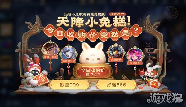 今年春节会推出一个小兔市集活动,这个活动和去年的小虎市集活动基本上一样,都是必得永久史诗皮肤的。