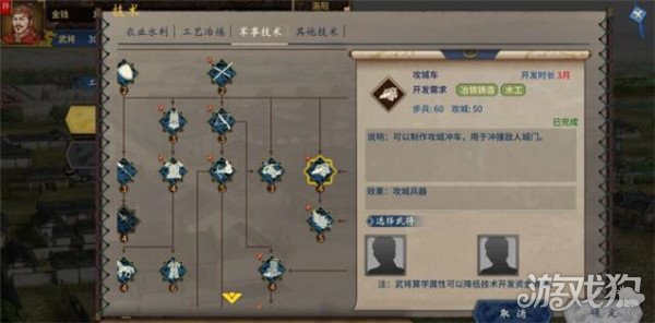 3.3科技是第一生产力,优先发展攻城科技,当科技点不了看看前置科技没完成,如攻城车需要木工。前期顺便再把刀盾兵研发出来,盾牌有坚守技能可以免伤。