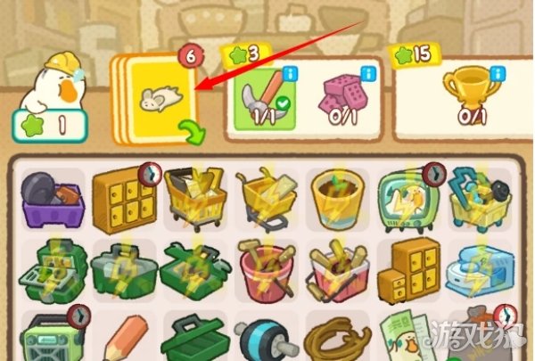 3、这里要注意的一点是:需要已经显示有产出但是没有空间产出的物品的旁边才可以,产出物是成卡片,有时候这样做可以用来省空间,等有空间的时候再给它合成就好啦!