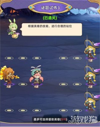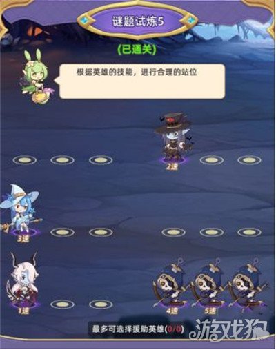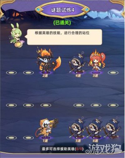 这一关要注意敌人的攻击是优先攻击后排的英雄,而且看速度就知道是对方先手攻击,所以放血量多的英雄顶住伤害,前排英雄输出。