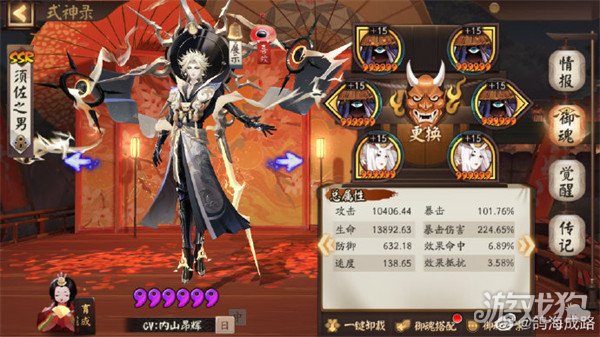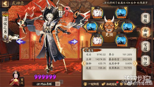 阴阳师魂王32s打法攻略,魂王32s顶配阵容推荐。阴阳师魂王32s顶配阵容怎么搭配?魂王32s阵容搭配要注意什么呢?下面小编为大家带来阴阳师魂王32s顶配阵容推荐,一起看看吧。 尝试了一下魂王的32s顶配阵容,居然能做出来震惊了,而且还是三套独立御魂…… 参考大佬配置。 须佐破势歌姬,攻击x暴伤>2.1,速度152以上且快过季。 季心眼歌伎,攻击x暴伤>3.05,速度152以上。 须佐二号心眼歌伎,攻击x暴伤>2.13,速度137以上。