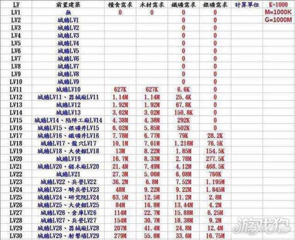 阿瓦隆之王要塞升级表是什么 表格图解就是这样,再见!