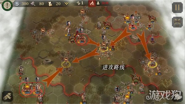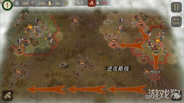 阿格里帕线的目标是击败20支敌军,守住3支关键部队,人口不低于25。本关是一场防守战,敌方兵力有点多,注意分配好各个进攻方向。两个城市最好都占下来,方便补充兵力。地图的最后上角会出现第5个关键部队:屋大维。地图不大,请时刻记住这是一场防守战。