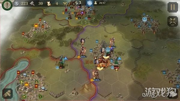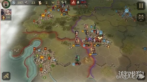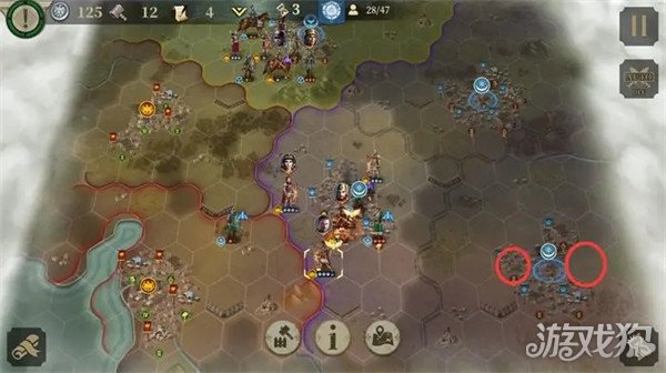 回合3:布局,运气好的话3连击可以直接把敌将打死。商铺建造图书馆(计算下文化数量在5回合时能开始研发总督-急行军),剑士+骑兵攻城。