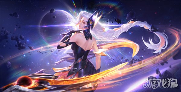 角色设计上结合英雄玩法特性进行了局内表现的本地化演绎 。特效以音乐为灵感,结合宇宙、星云等高概念元素,将白矮星的燃爆色融入到技能色彩中,金刃挥舞之间,宇宙裂缝开启,金色音响高速旋转,音波能量不断释放,力量感十足。