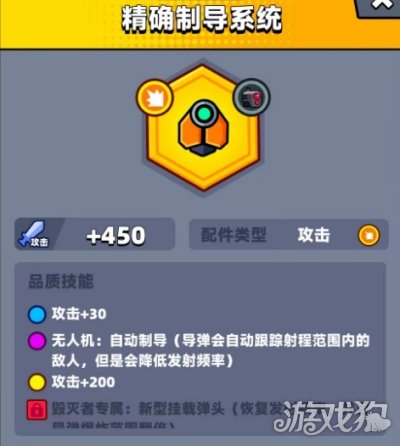 1号位的精准制导系统,这可是咱们一定要带的,这个配件搭配上无人机技能可谓是天下无敌!辅助无人机进行精准制导追踪打击敌人,效果强悍至极。