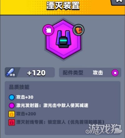 3号位选择激光配件,激光配件可以为激光发射器提供减速效果,在功能性上得到了大大的加强,而且激光发射器本就有不俗的伤害,所以选择此配件还是非常舒服的。