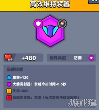 4号位则选择火箭配件,此配件可以减少我们火箭发射的间隔时间,总体来说还是个非常不错的配件,值得各位玩家佩带使用。