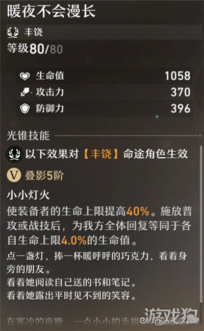 不如可肝的丰饶光锥同一种心情。朴实无华的生命力加成,可以提高依据自身生命值提供治疗的角色使用。第二个额外回复生命值的被动实在有些杯水车薪(叠影满也只有4%,而且看的是各自的生命值,不看奶妈自身血量)。也许在模拟宇宙中搭配特定的buff会发挥一些作用。