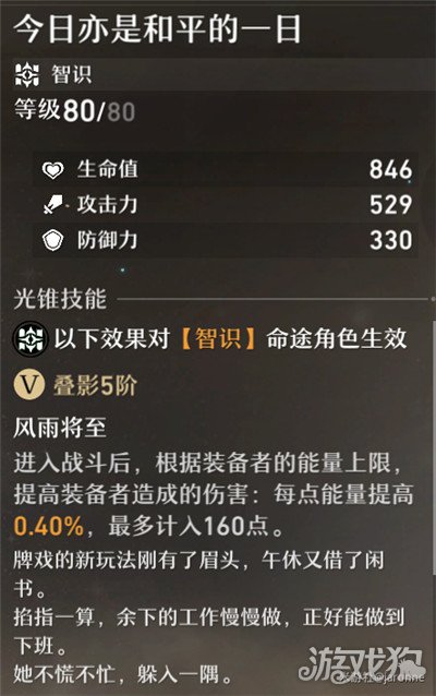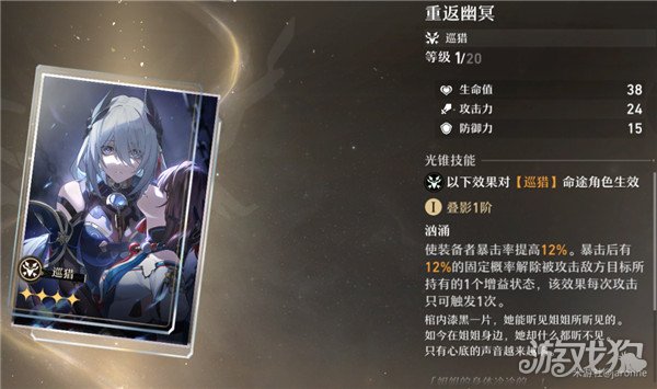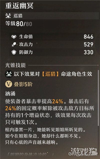 和大多数的巡猎光锥一样,第一个被动是提升暴击率。第二个被动能在暴击时解除对方增益状态,总体对自身输出增益不大。(话说这个光锥封面的姐姐好美啊)