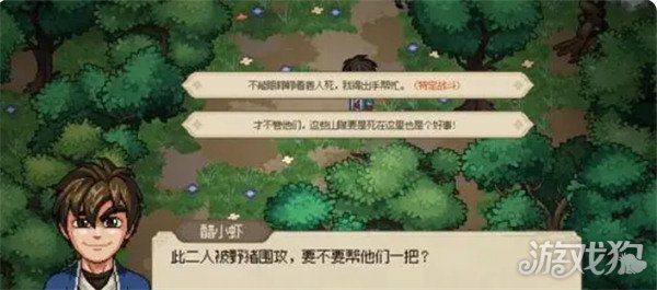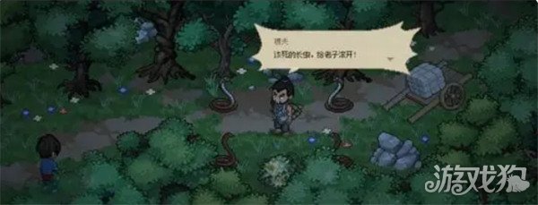 4、来到林子右边,玩家可以遇到樵夫被4条蛇围殴的剧情,在此处会有选项,玩家在选帮樵夫后。
