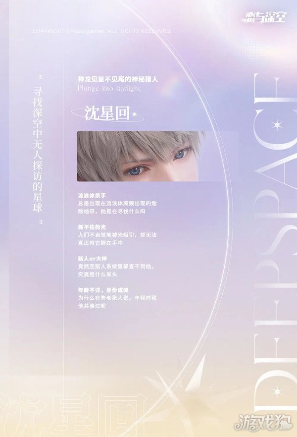 恋与深空沈星回角色介绍 档案内容说明。沈星回角色怎么样?本期通讯为大家介绍的这位嘉宾,来自大家即将踏入的深空猎人行业。