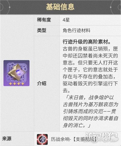 崩坏星穹铁道历战余响副本掉落材料大全,历战余响副本能够掉落两种材料都是行迹升级材料,下面是这个副本掉落材料介绍,一起来看看吧。 刷一次需要30开拓力,所有副本加起来一周总共可以刷三次 ①毁灭者的末路 毁灭者的末路可以用来升级以下角色的行迹: ②守护者的悲愿 守护者的悲愿可以用于升级以下角色的行迹: