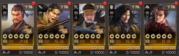推荐阵容一:卢植+张角+吕布+张梁+张宝