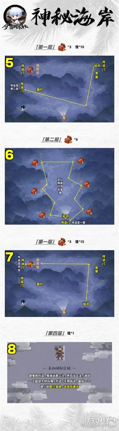 阴阳师神秘海岸怎么过,神秘海岸走法路线流程。神秘海岸是阴阳师的全新活动绮都探秘的关卡之一,那么神秘海岸怎么通关呢,小编今天就为大家带来了神秘海岸的通关攻略、流程路线,感兴趣的话就一起来看看吧。 阴阳师神秘海岸攻略 1.阴阳师神秘海岸走法如下,跟着箭头的顺序去。 2.玩法中掉落的普通饭团和绮想饭团可提升增益等级,使用银之意志提升洞爷湖等级也可解锁各项探索加成。 3.可以边打边养成加点,提升系统式神的伤害。 4.解谜是有点难度,看地图可以快速通关。