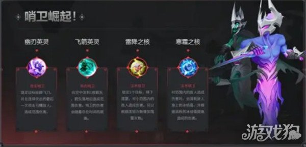 幽刃英灵-放置幽刃英灵。哨卫对指定敌人发射投射物,并可以进行连续攻击。连续攻击结束时,投射物击中敌人会产生高伤害的爆炸