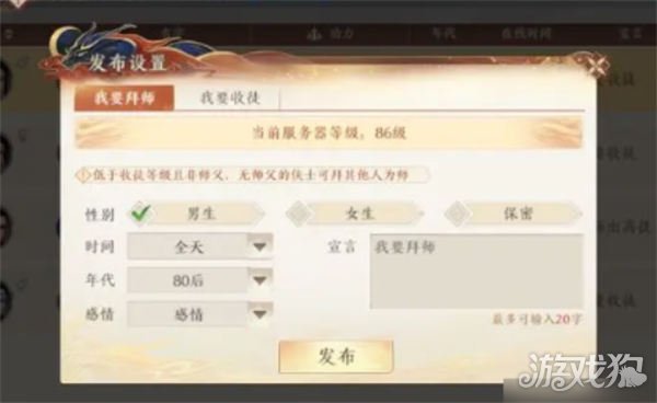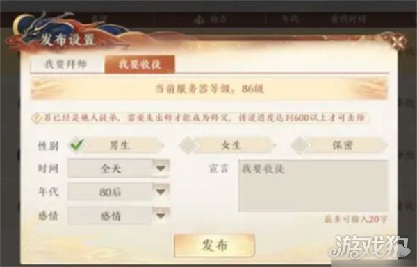 ◇服务器等级<59,不开放拜师和收徒。
