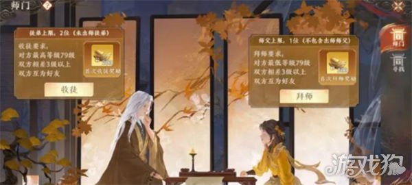 ◇69 <服务器等级≤79,69级以上的少侠,可选择成为师父并进行收徒。等级> < p>