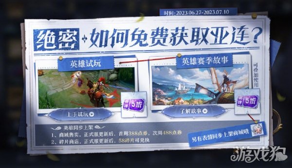 参与亚连的英雄试玩和英雄赛季故事系统即可免费领取英雄