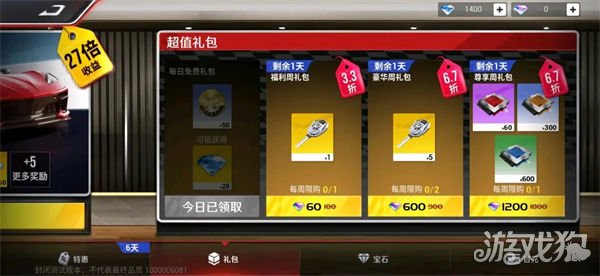 游戏内的礼包购买界面中,每天都会刷新一个免费礼包,礼包中有一定数量的钻石和金币,也别忘了每天领取一下。