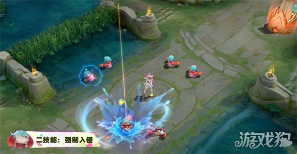 二技能:召唤萌趣可爱、头顶河豚的螃蟹管家 ,当它们落地时,海浪翻腾水花四溅,热带小鱼和海星点缀于层层浪涛中;