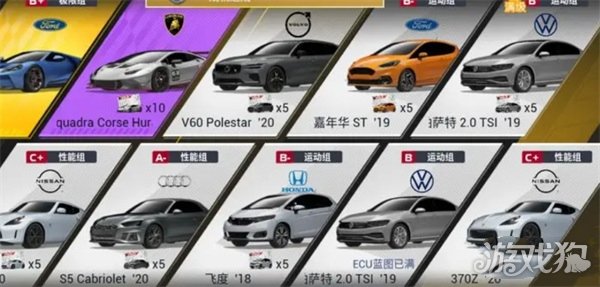 6、幸能组的金车基本都不错,本田、兰博基尼、保时捷、奥迪、路特斯。幸能组紫车能玩的不少。