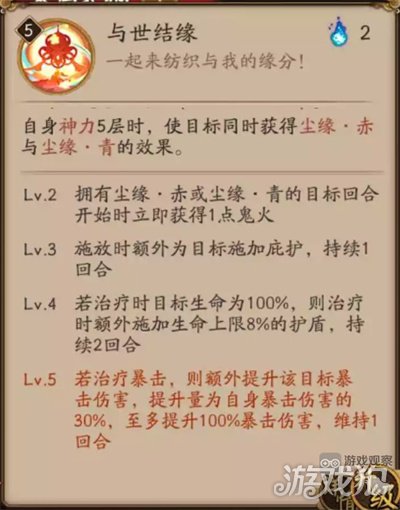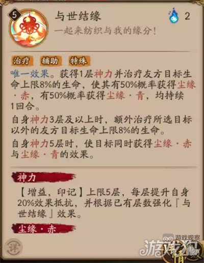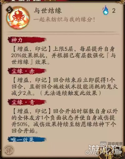 结缘不同buff带来不同效果,行动前恢复鬼火,增加花朵buff,自身增加1层结缘buff
