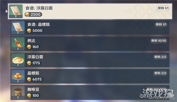可购买浮露白霜、晶螺糕食谱,枫丹特色食物及咖啡豆