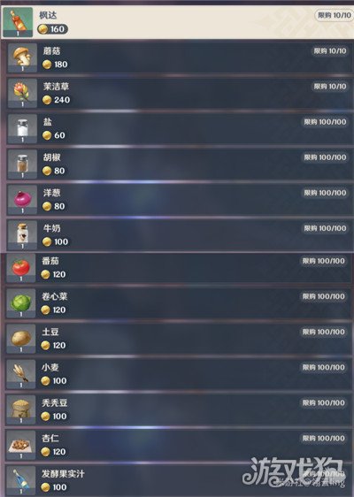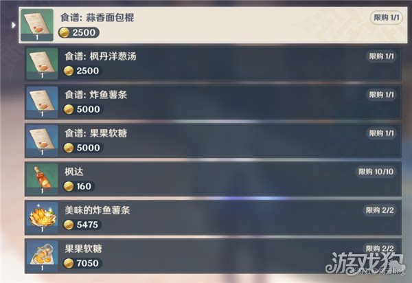 可购买一些新食谱及枫丹特色食物
