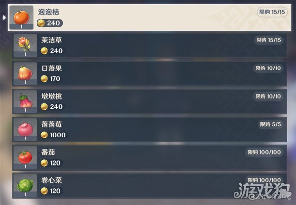 可购买一些常见水果及枫丹产的水果(泡泡桔、沫洁草)