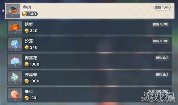 可购买一些水产,包括枫丹的特产