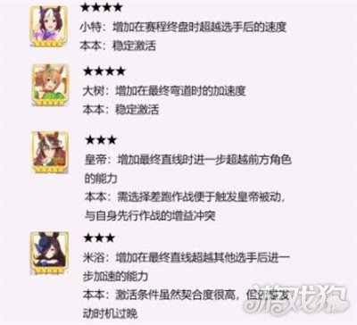 6、其他的角色例如好歌剧、目白麦昆、超级小海湾、东海帝王等都属于泛用相性好的种马,玩家们可以根据自己的情况来选择搭配。