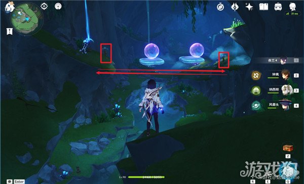 5,然后借助旁边水母飞到北边崖壁上,引导第2个仙灵回去