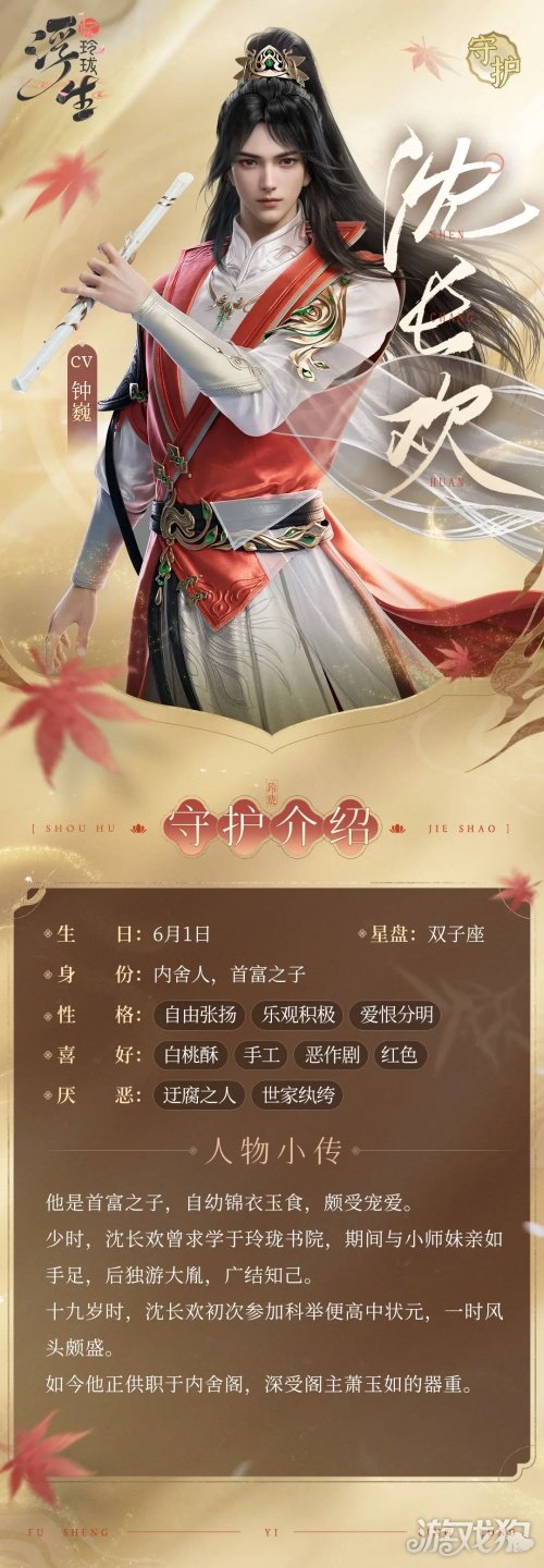 浮生忆玲珑沈长欢cv立绘分享,喜好厌恶性格一览。他是内舍阁的头号才子,作为大胤首富之子,他从小锦衣玉食,备受宠爱。然而,年少时和师傅前往漠北边境的战场之行,在冥冥之中改写了他的命运……在后来的岁月中,他独游大胤,广交知己。