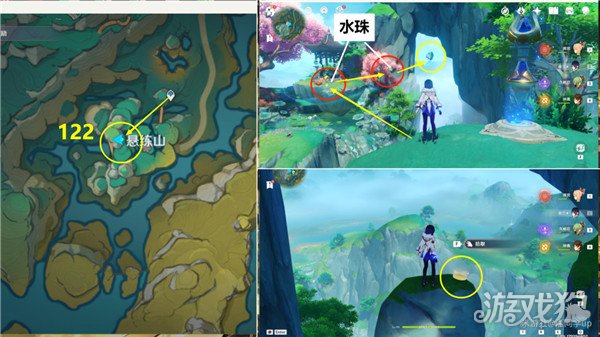 3、第122个,在【悬练山】的【空中浮石上】,传送过去后利用水珠飞过去即可